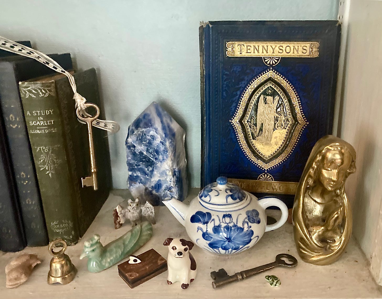 In my hesitation, I saw a book on a shelf and made an excuse to drop it off at a friend’s house. He took me in and gave me a tour—we’re still new friends, so I’d never actually been inside. I met his cats and he walked me through his tidy, well-lit rooms. I admired his books and the artful arrangement of sentimental objects on his shelves. I asked for the stories behind each little thing, then picked them up one by one and held them in my hands like pearls.