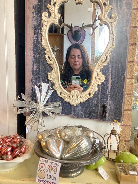 After a little aimless driving I found myself at a favorite shop of mine that lives inside an old Victorian house. It’s full of plants and antiques, and it felt good to creep through its crooked rooms and handle things gently, turning so many objects over and over in my hands—a museum of unknown memories.
